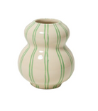 Whether celebrating spring, Mother's Day, or any time of year, the curvy ceramic Robbi Vase brings dimension & a bit of color to a centerpiece. Featuring a watercolor hand painted application of imperfect green double line stripes from base to rim, this beautiful vessel makes a lovely gift paired with a floral arrangement. Display as a part of a spring centerpiece alongside the other Robbi styles.
