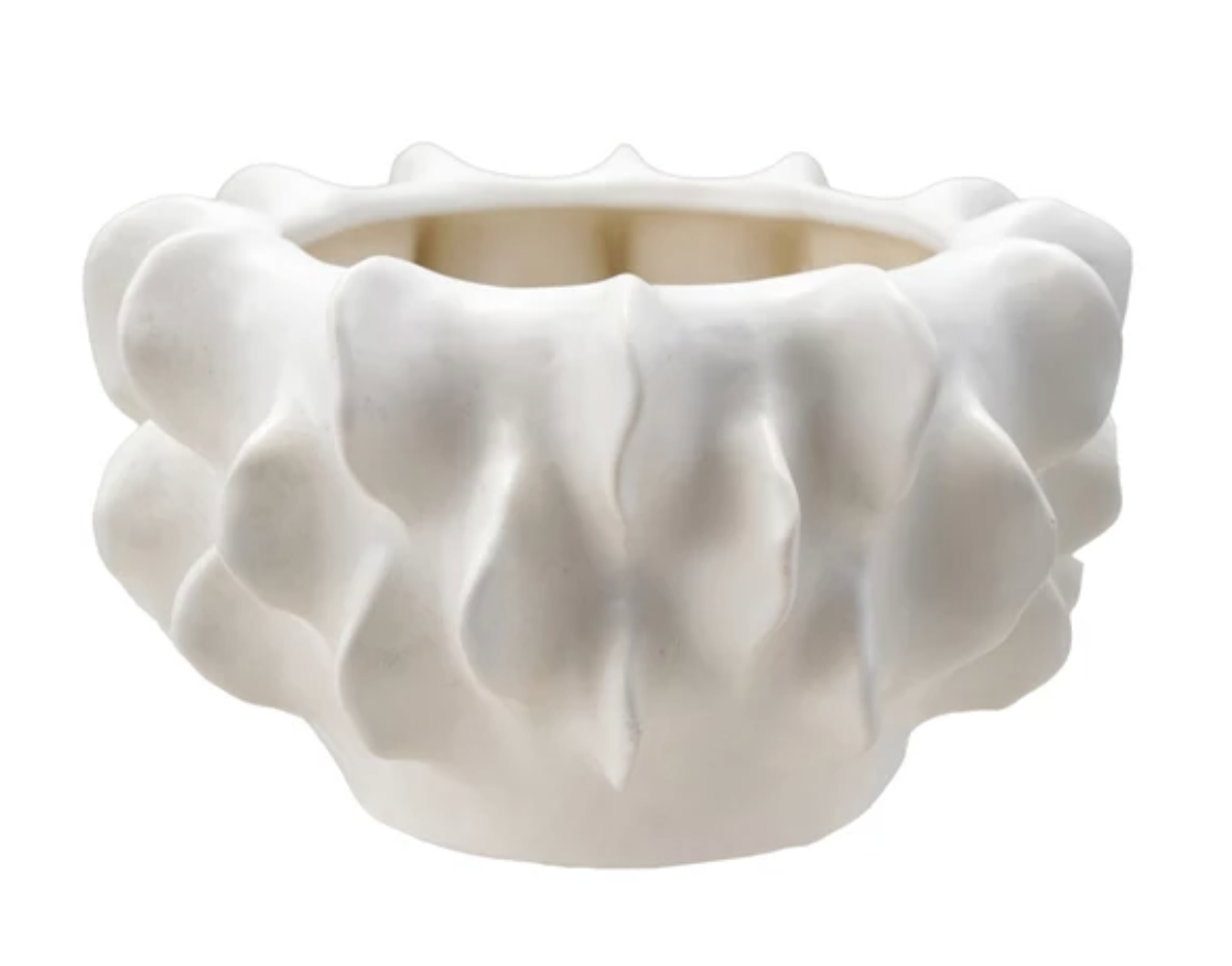 11-1/4" Round x 6-3/4"H Stoneware Sculptural Planter, Matte White (Holds 7" Pot)