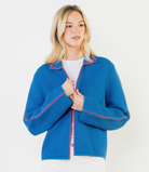Collared Contrast Stitch Knit Cardigan