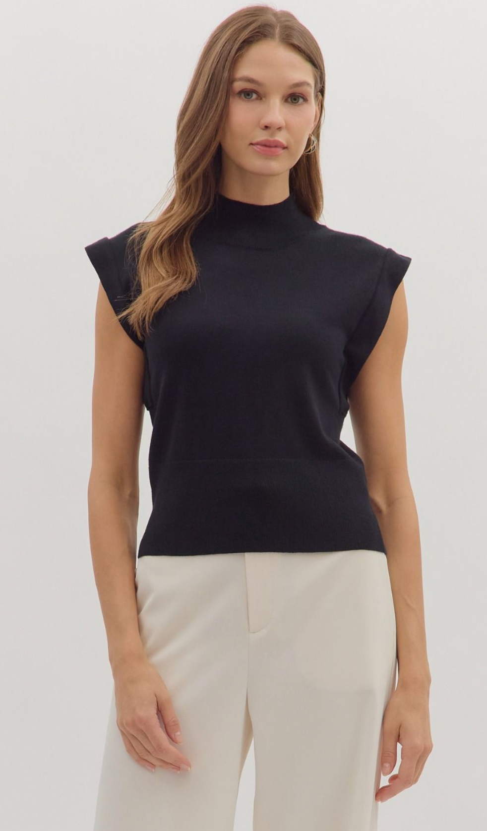 MOCK NECK SLEEVELESS KNIT TOP - BLACK