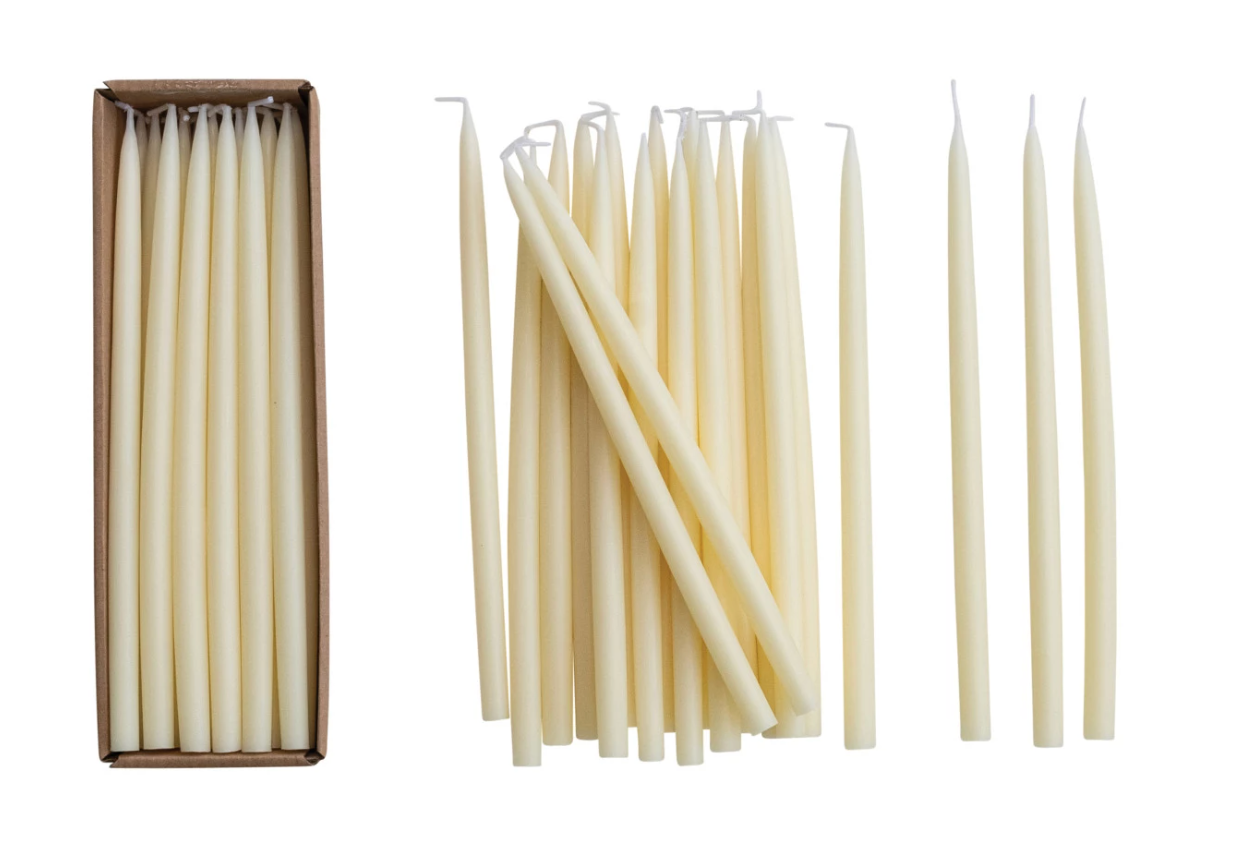 UNSCENTED THIN TAPER CANDLES IN BOX - IVORY