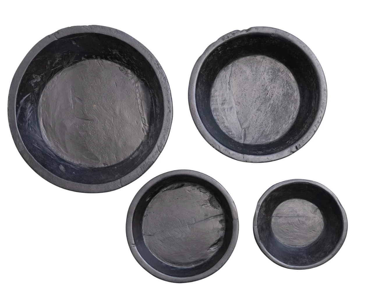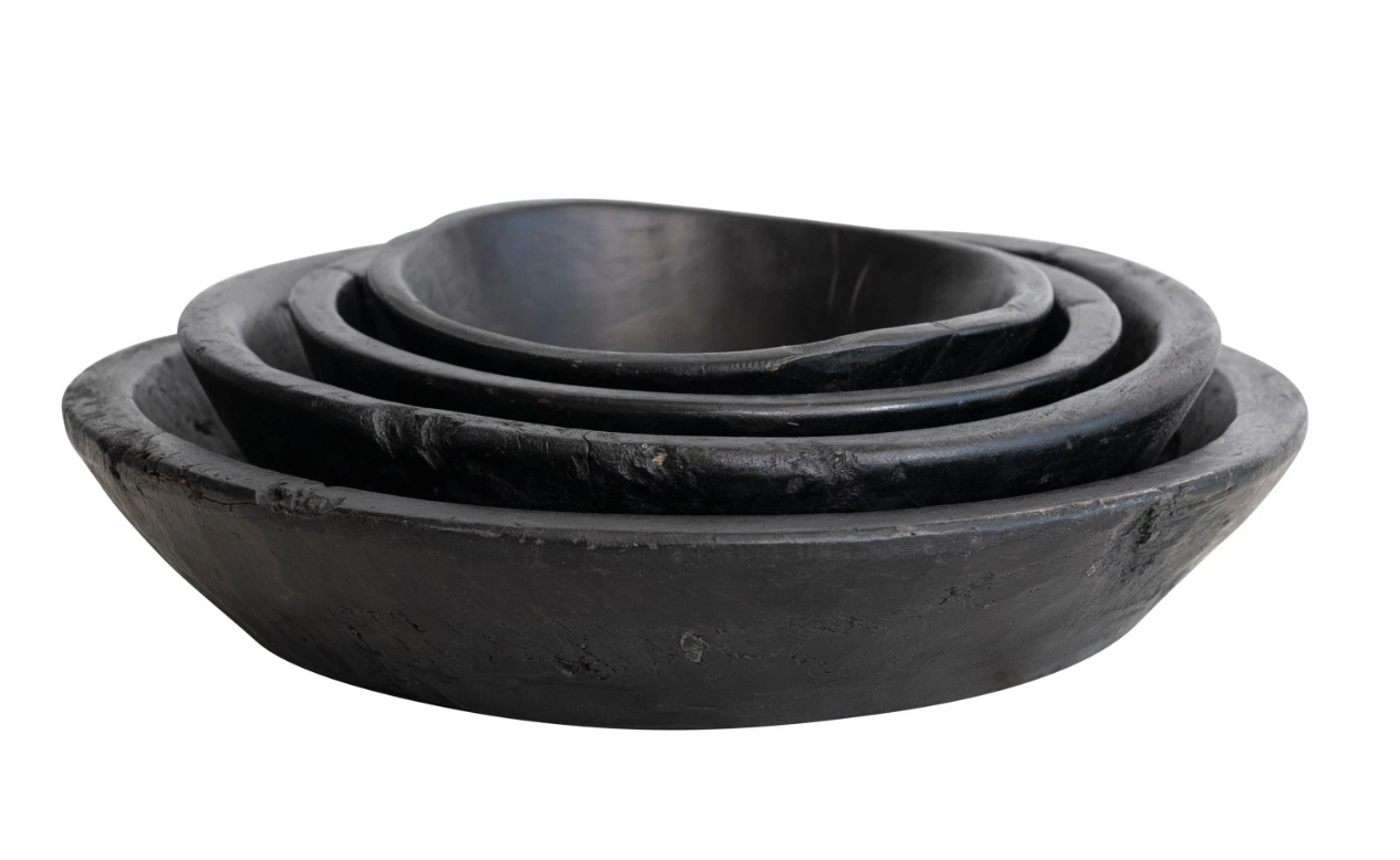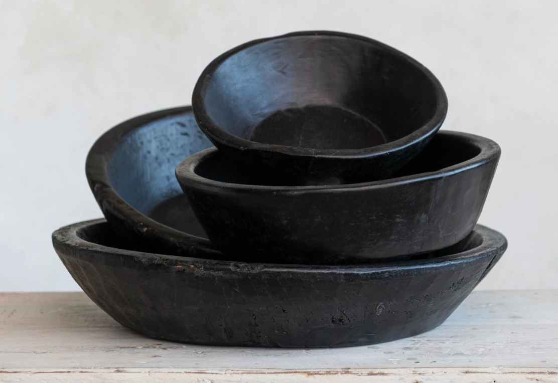 ROUND DECORATIVE RECLAIMED WOOD VINTAGE REPRODUCTION BOWLS - 4 SIZES - BLACK