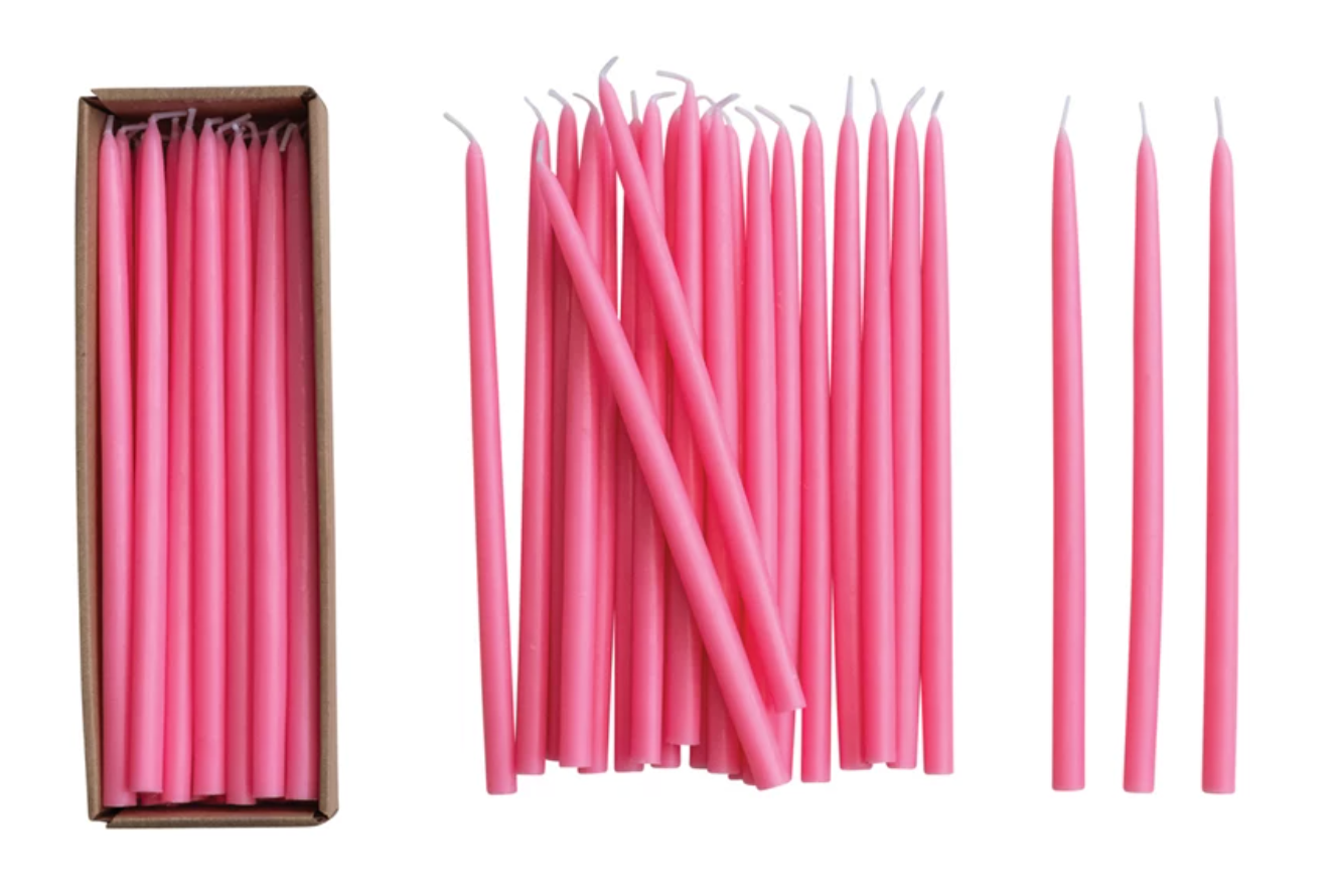 UNSCENTED THIN TAPER CANDLES IN BOX - PINK