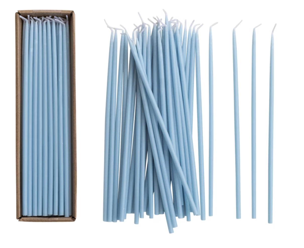 UNSCENTED THIN TAPER CANDLES IN BOX - BLUE