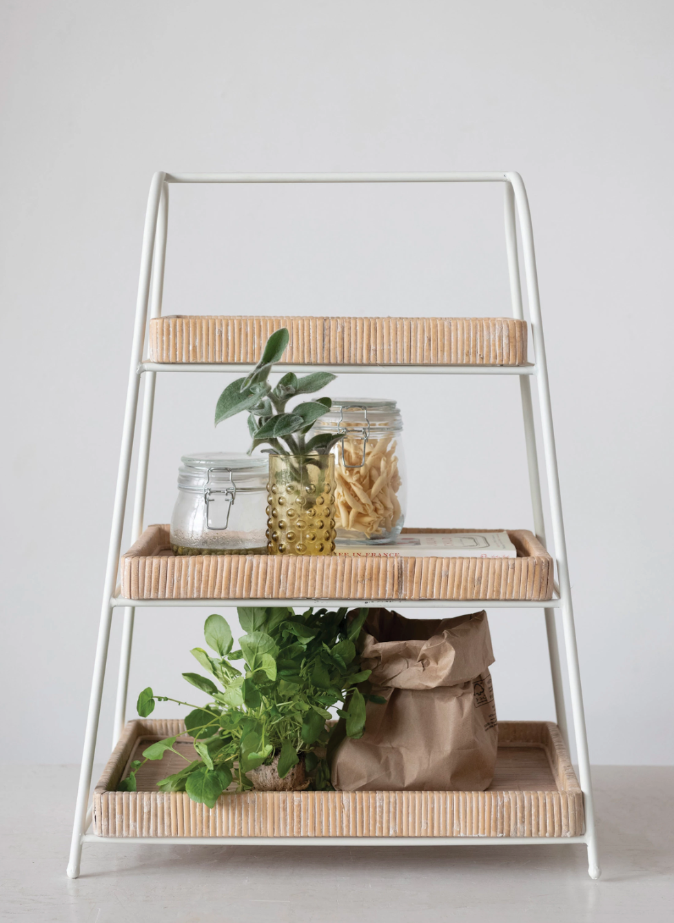 2-1/2"L x 16-1/2"W x 41-1/4"H Metal & Rattan 3-Tier Stand w/ Removable Baskets
