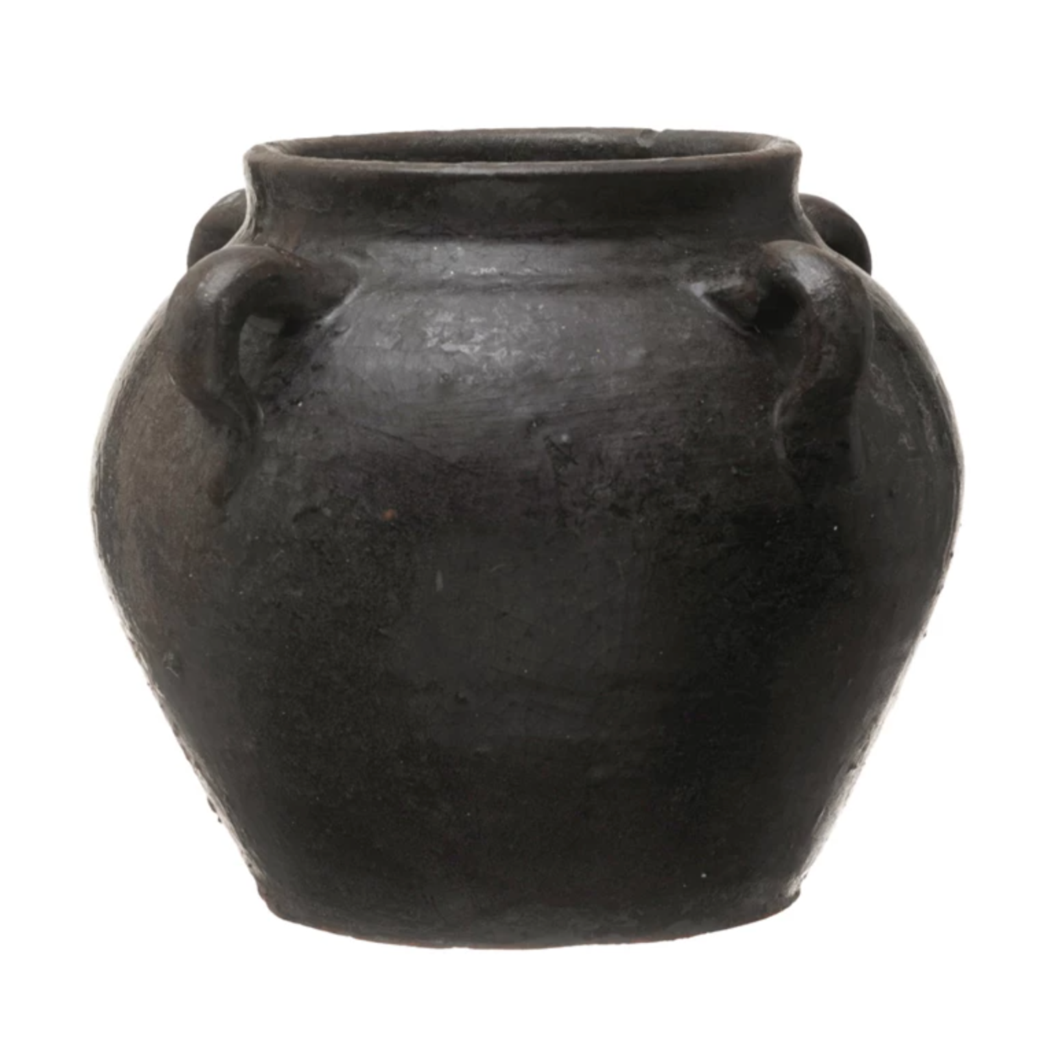 Approximately 7-1/2" Round x 6-3/4"H Found Decorative Clay Jar, Distressed Black (Each One Will Vary)