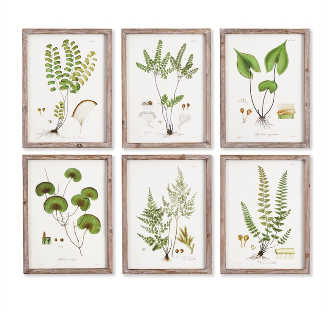 • These wildly diverse and unusual garden greens make a handsome collection. Finished off with simple, whitewashed wood frames, a beautiful way to furnish home office, study or entry. Sold individually