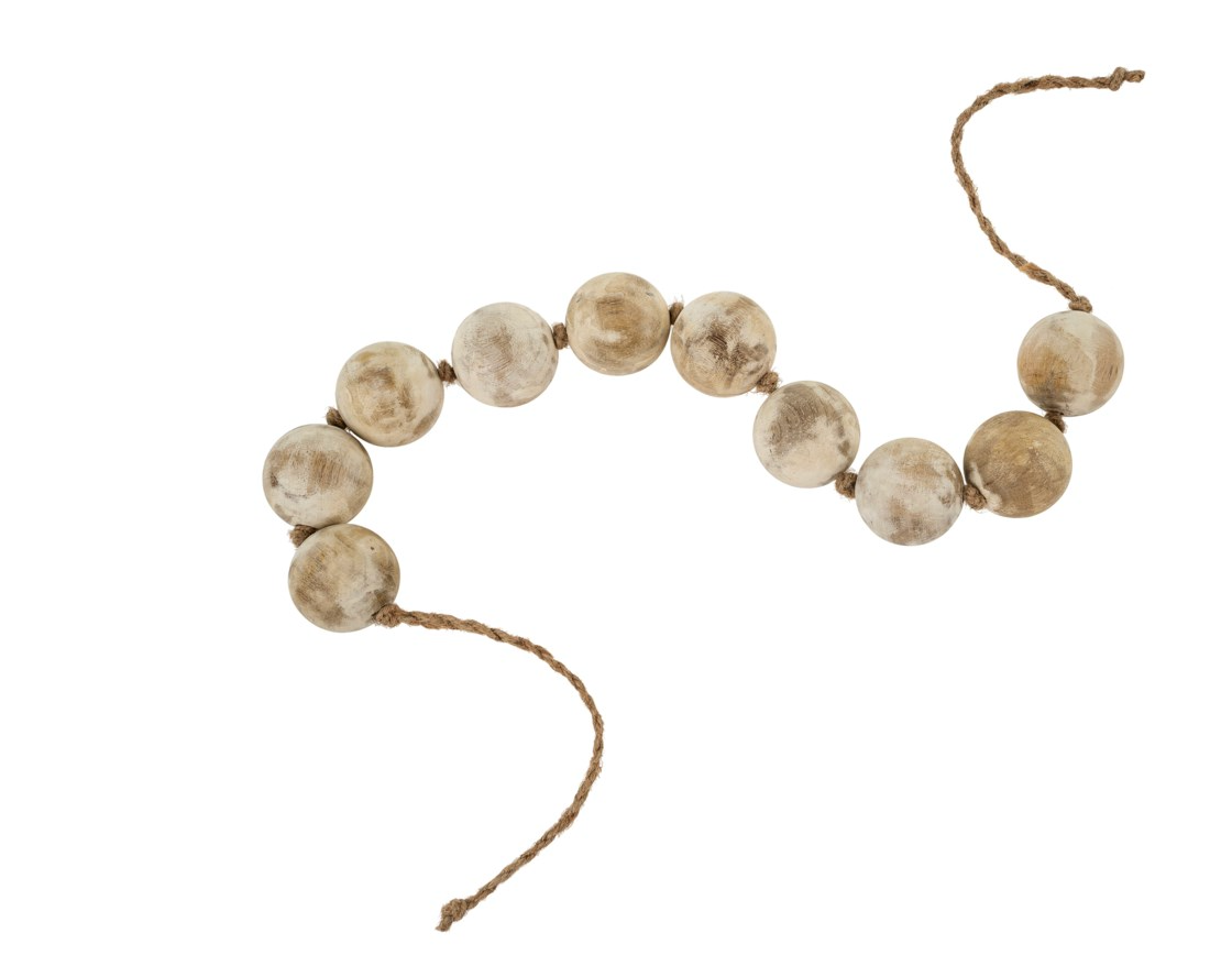 With oversized beads, the Wooden Bead Garland features whitewashed mango wood beads on jute chord. A feel-good style accent, it shines when draped over a stack of favourite books, woven between décor pieces on a side console, or to add a touch of textural warmth wherever it's needed.