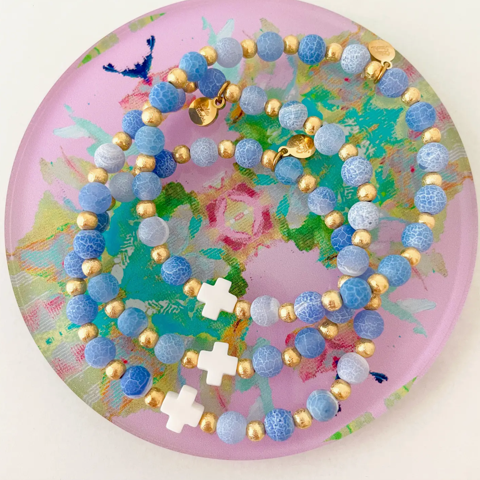 Discover the Lakewood Cross Bracelet from Cola Stacks, a distinctive piece of jewelry that adds a unique touch to any outfit. Measuring 7 inches, it features 6mm beads for a striking yet subtle look. Handcrafted in Columbia, SC, this bracelet is more than an accessory; it's a reflection of your personality, a token of your faith, and a testament to your style. This bracelet is a perfect reminder of your mantra and loved ones. Please note that all pieces are made to order for a truly personal touch.