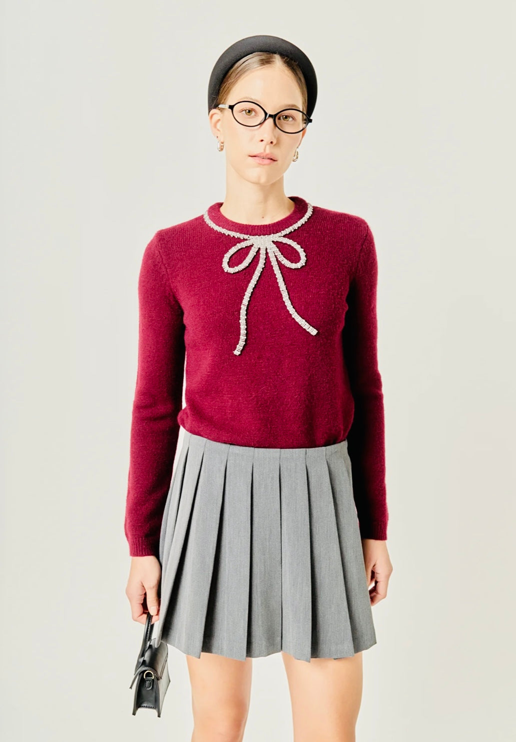 Be effortlessly chic in our Rhinestone Bow Knit top perfect for any occasion. The round neckline and long sleeves make it comfortable and versatile. The eye-catching rhinestone and pearl bow embroidery on the neckline adds a touch of elegance. With a back keyhole and clear button closure it's easy to put on and take off. The elastic closure ensures a perfect fit for all body types. Made with high-quality materials this top is sure to become a staple in your wardrobe. Get ready to turn heads with this must-have top that combines style and comfort.