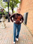 WOODEN SHIPS STAR RAGLAN CHUNKY CREW SWEATER - BROWN/CHESTNUT