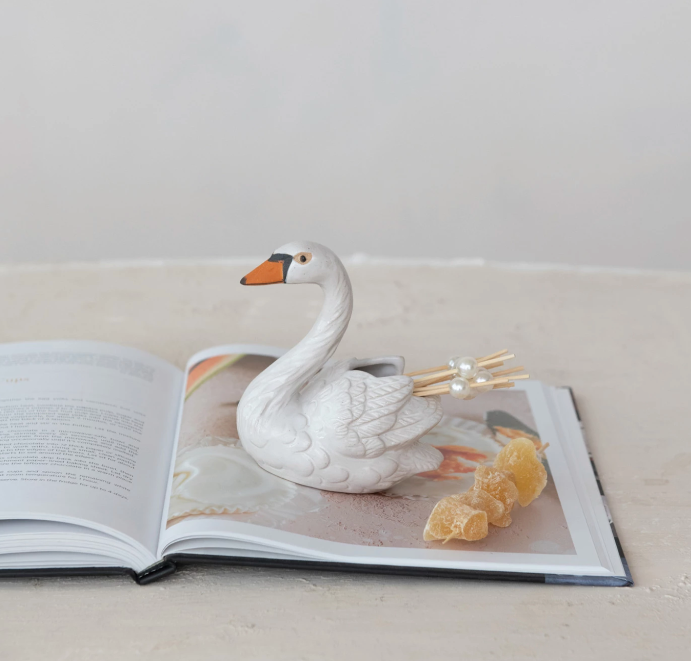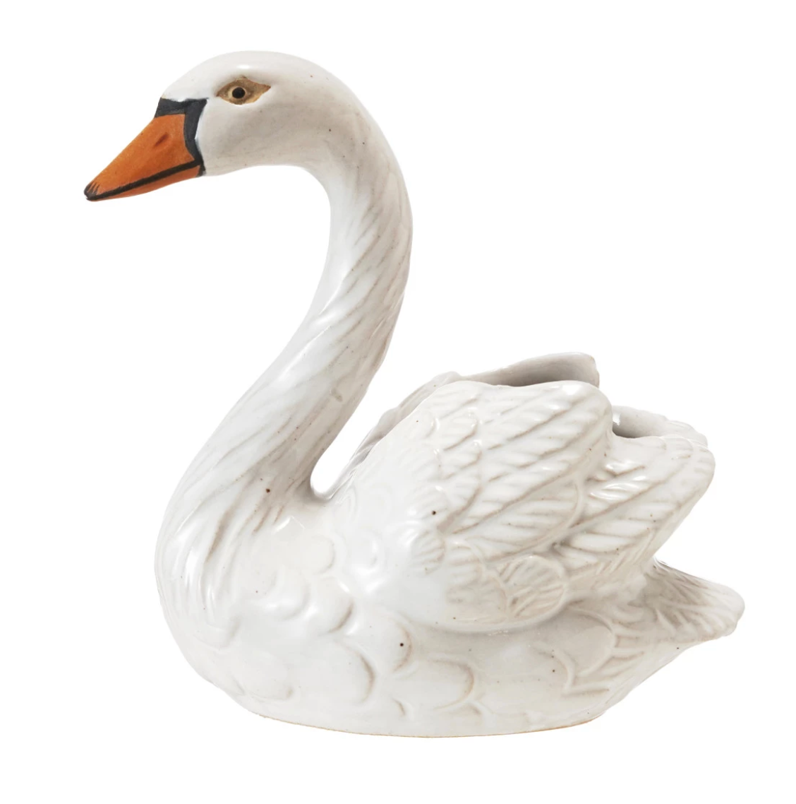 4"L x 2"W x 4"H Stoneware Swan Shaped Toothpick Holder, White, Orange Color & Black