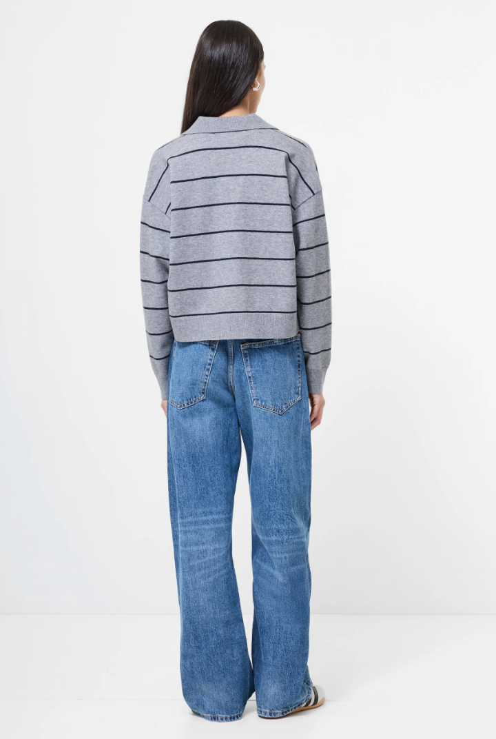 SLOANE KNIT STRIPE PULLOVER - GREY/MARINE