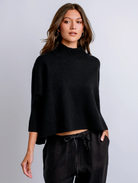 Oversized boxy sweater with fitted mock neck & 3/4 sleeves