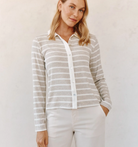BELLA DAHL CONTRAST PLACKET BUTTON DOWN - SAND STRIPE