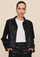 BELLA DAHL FAUX LEATHER CROP BUTTON DOWN - BLACK