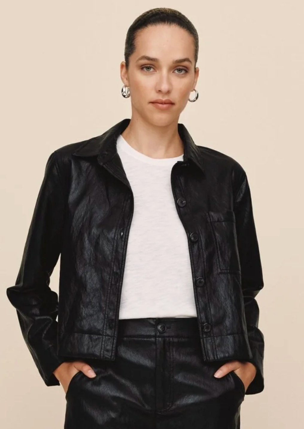 Relaxed yet elevated, the Crop Pocket Button Down is a versatile layer designed for effortless, everyday wear. Crafted in buttery soft faux leather, it combines structure with a luxurious feel.