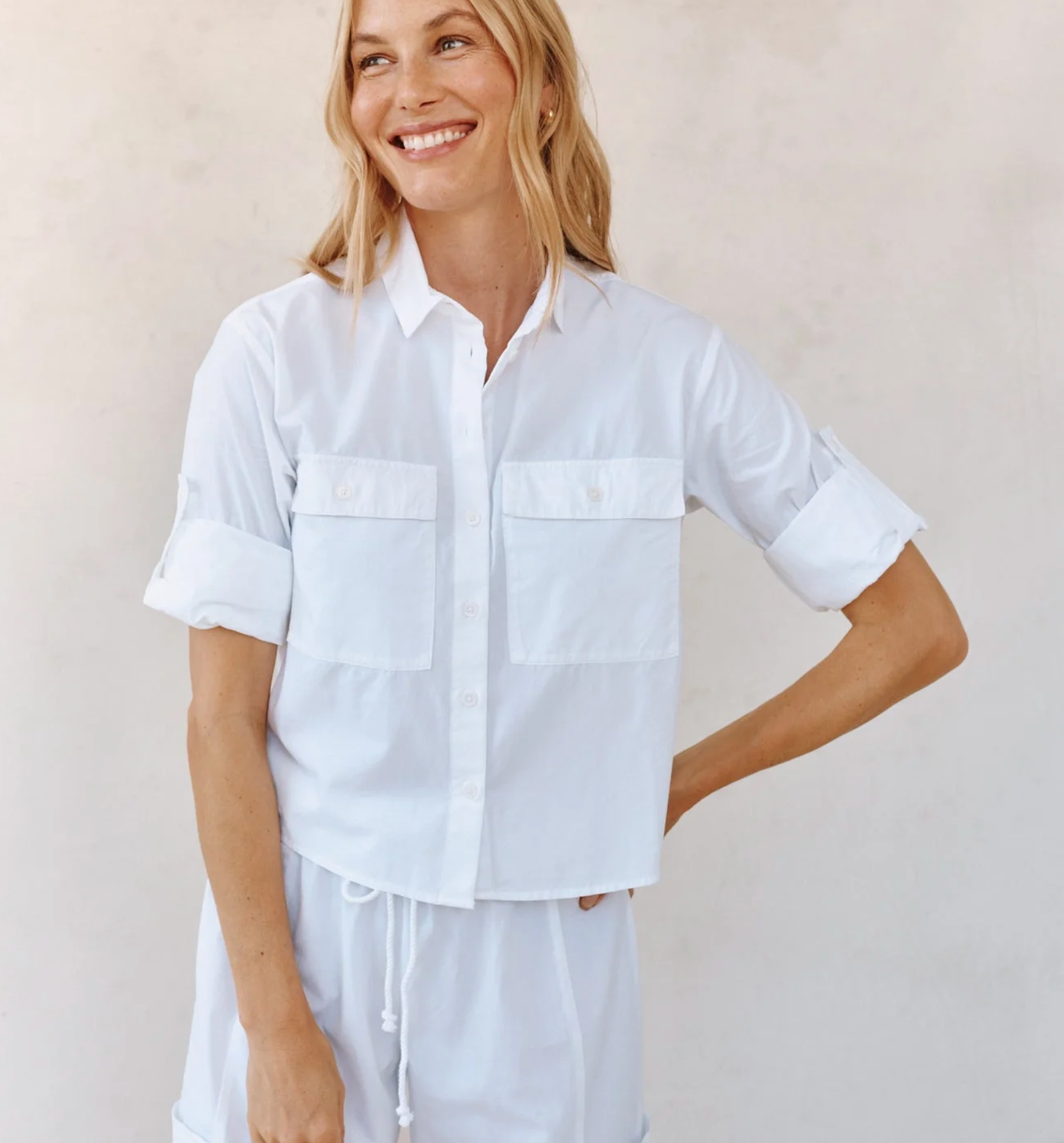 BELLA DAHL CROP UTILITY SHIRT - WHITE