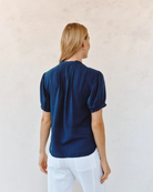 BELLA DAHL SHORT SLEEVE PINTUCK SHIRT - NAVY DUSK