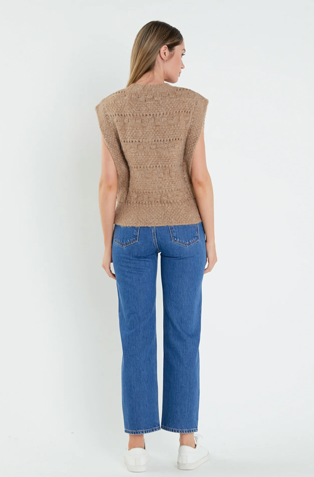 CHUNKY TEXTURED KNIT VEST - BROWN
