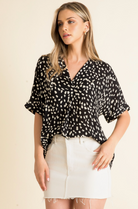 COLLARED PRINT BLOUSE - BLACK/WHITE