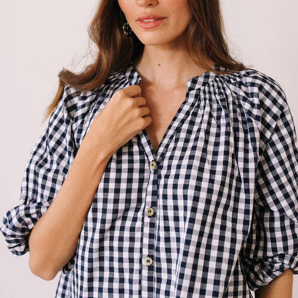 NAVY GINGHAM LUCIA TOP - NAVY