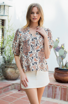 PAISLEY PRINT PUFF SLEEVE TOP - BEIGE