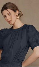 PINTUCK DETAIL PUFF SLEEVE TOP - NAVY