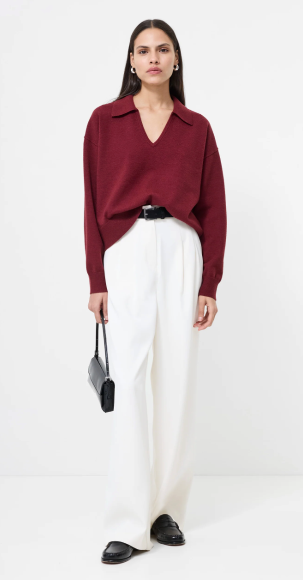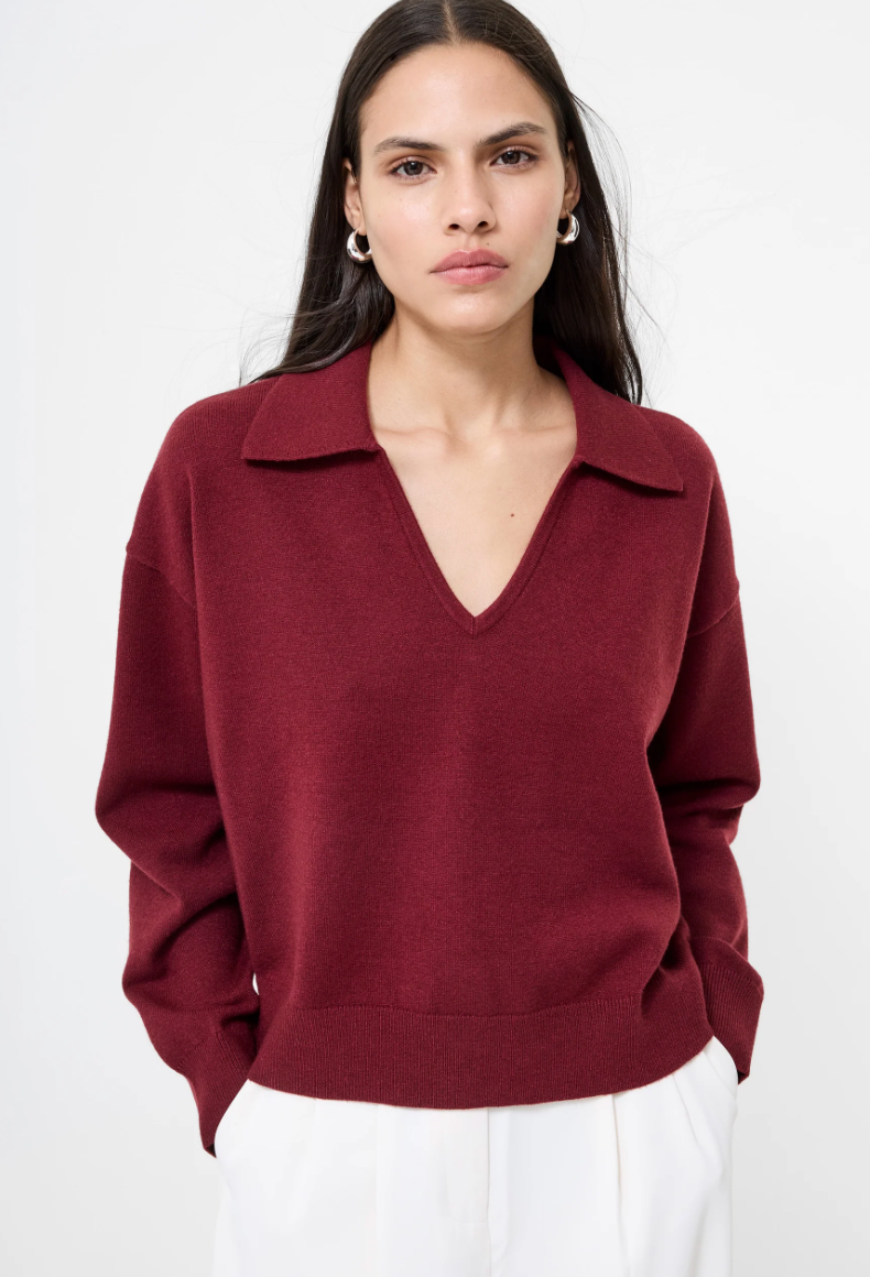 SLOANE KNIT COLLARED PULLOVER - CABERNET
