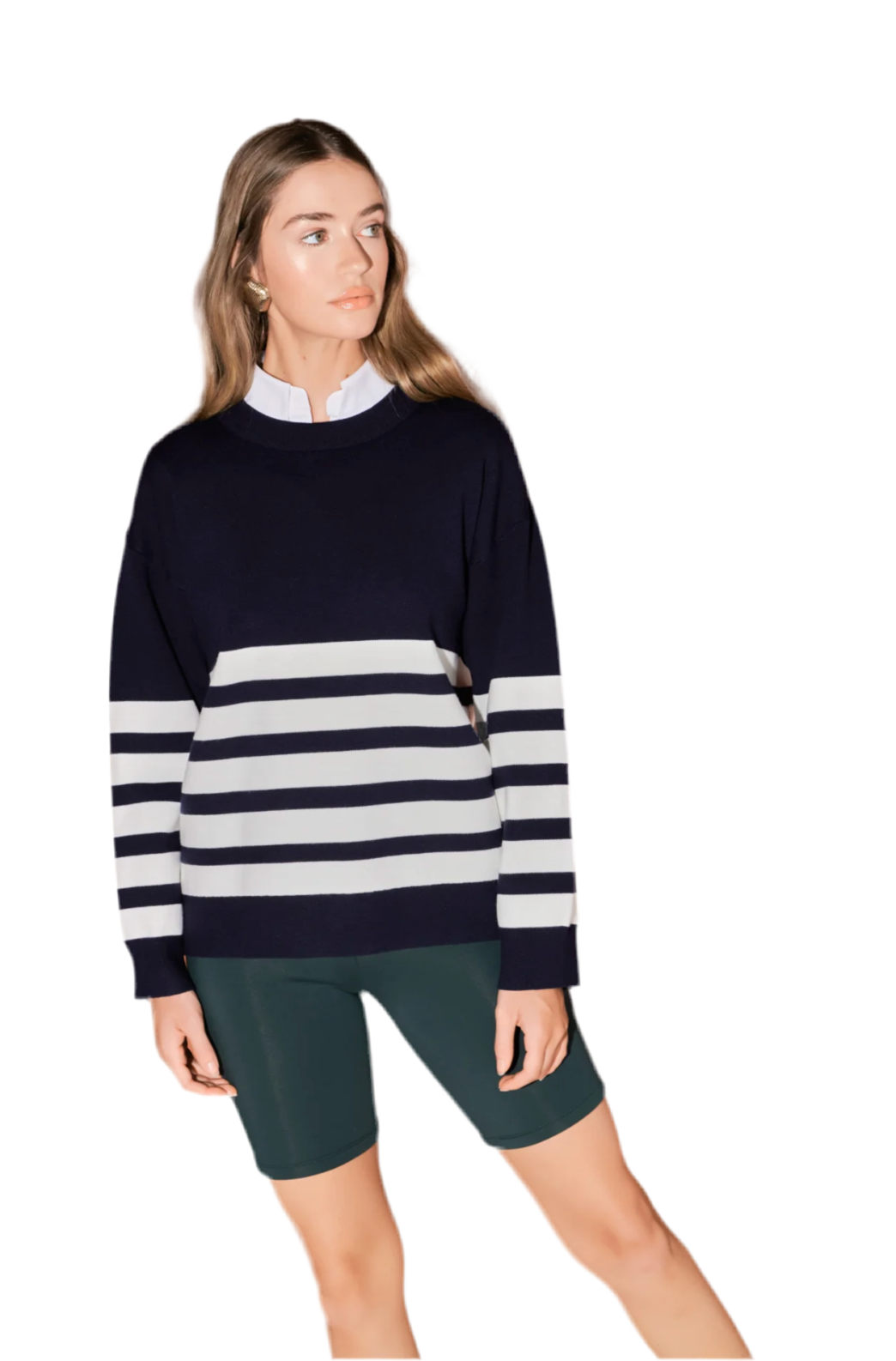 STRIPE CREW NECK SWEATER - NAVY/WHITE