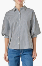 STRIPE SHIRT WITH BALLOON SLEEVES - NAVY