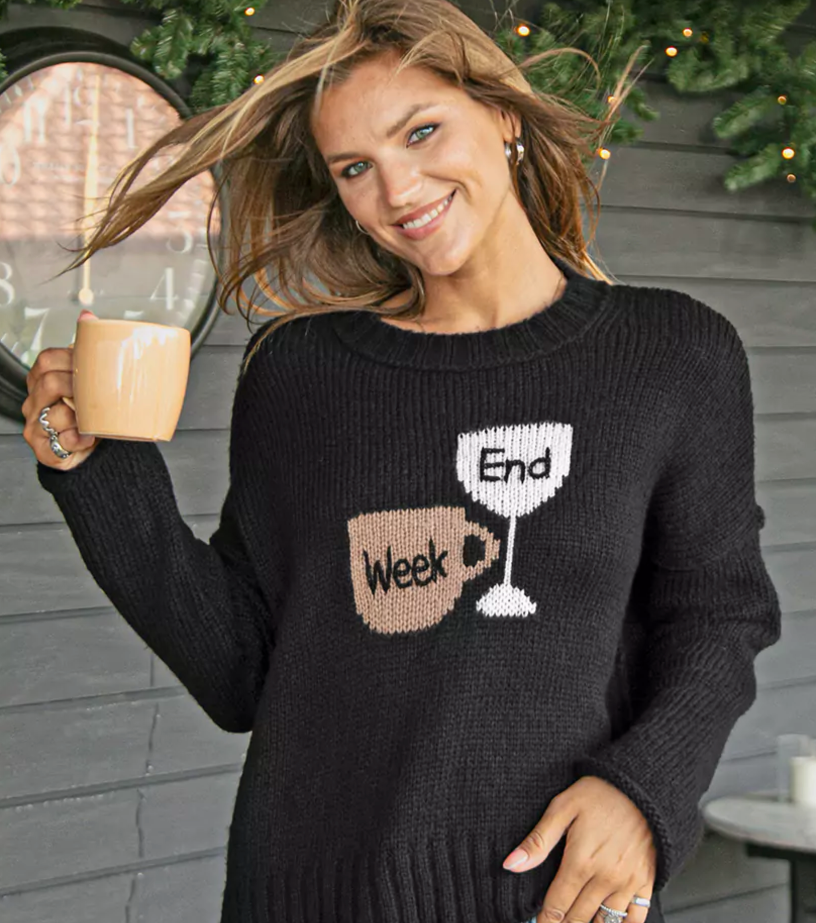 WOODEN SHIPS WEEK VS END CHUNKY CREW SWEATER - BLACK