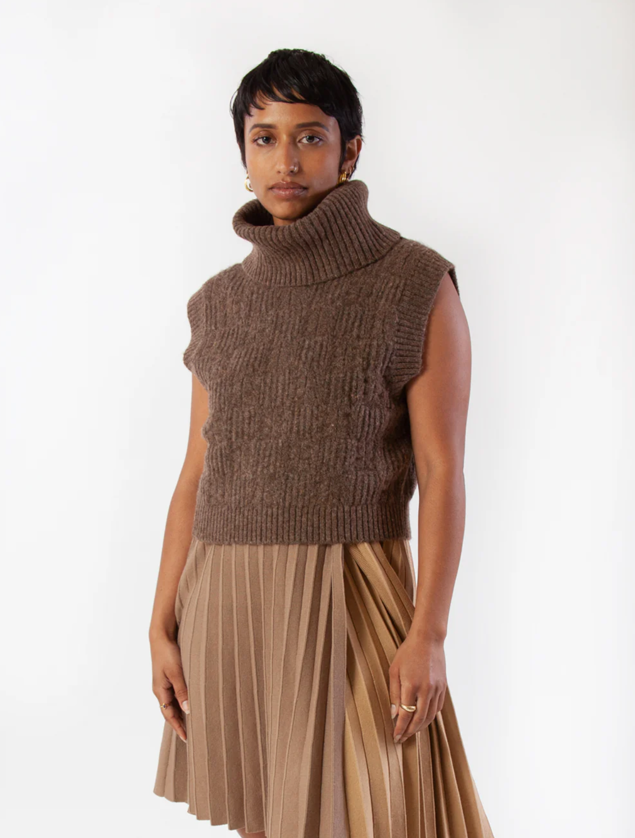 DRAMATIC BALLOON SLEEVE MOCK NECK SWEATER - MAUVE