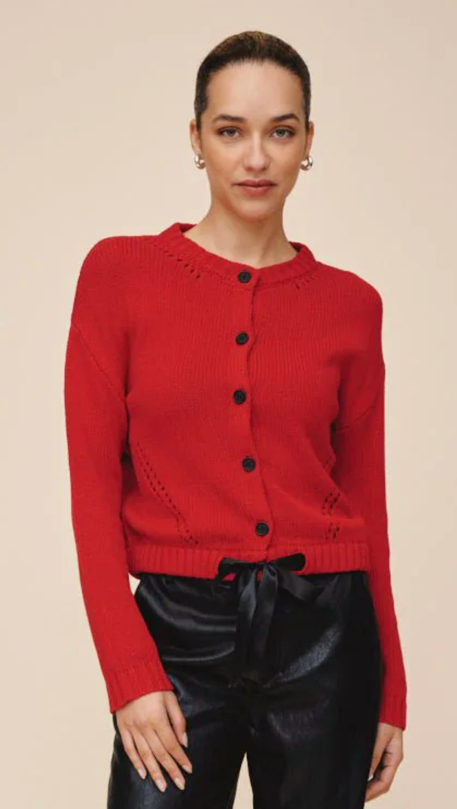 BELLA DAHL TIE WAIST CARDIGAN - CRIMSON CHERRY