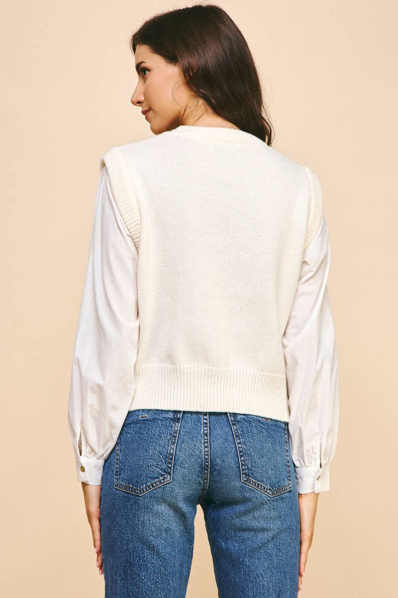 KNIT WOVEN COMBO TOP - IVORY
