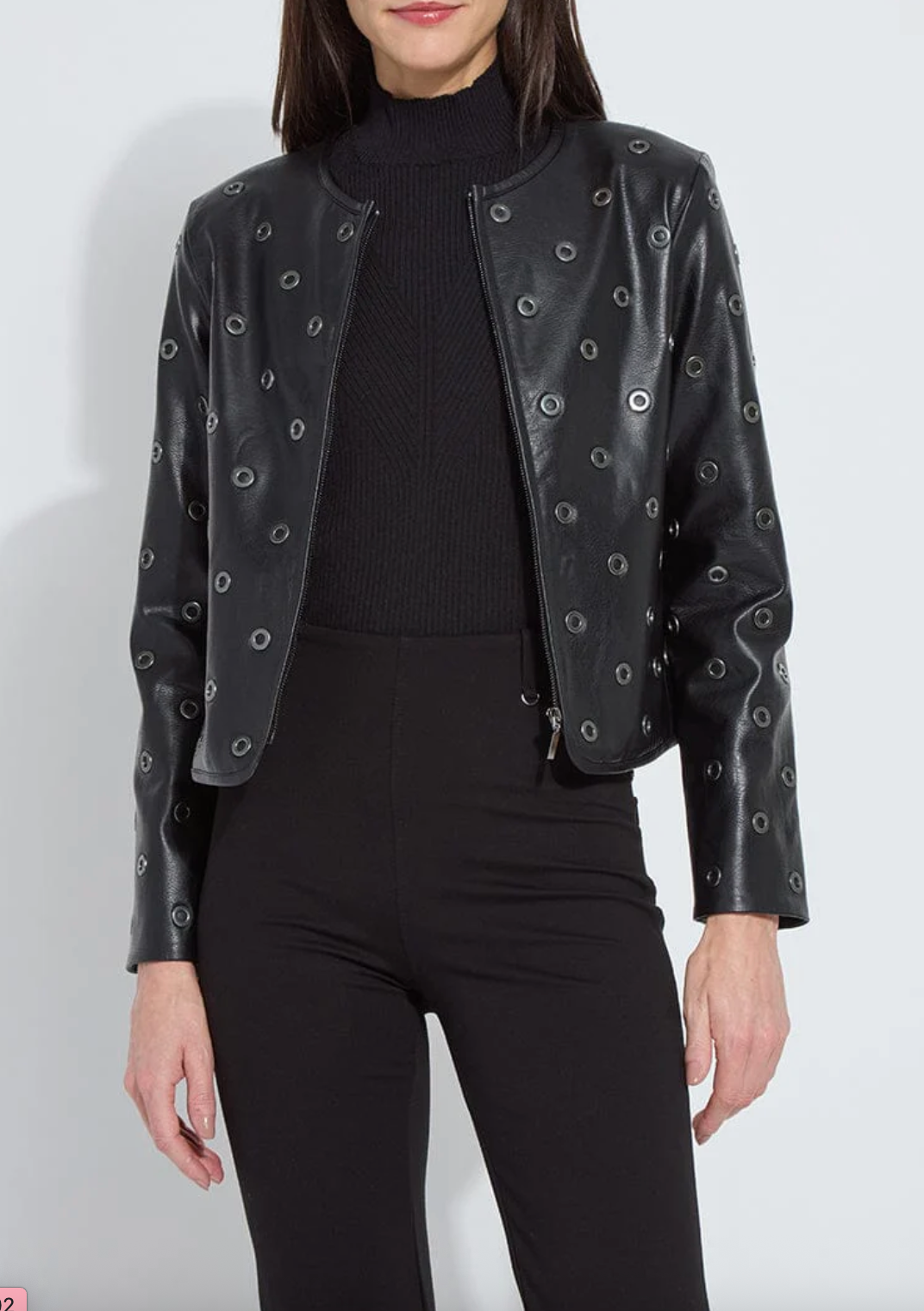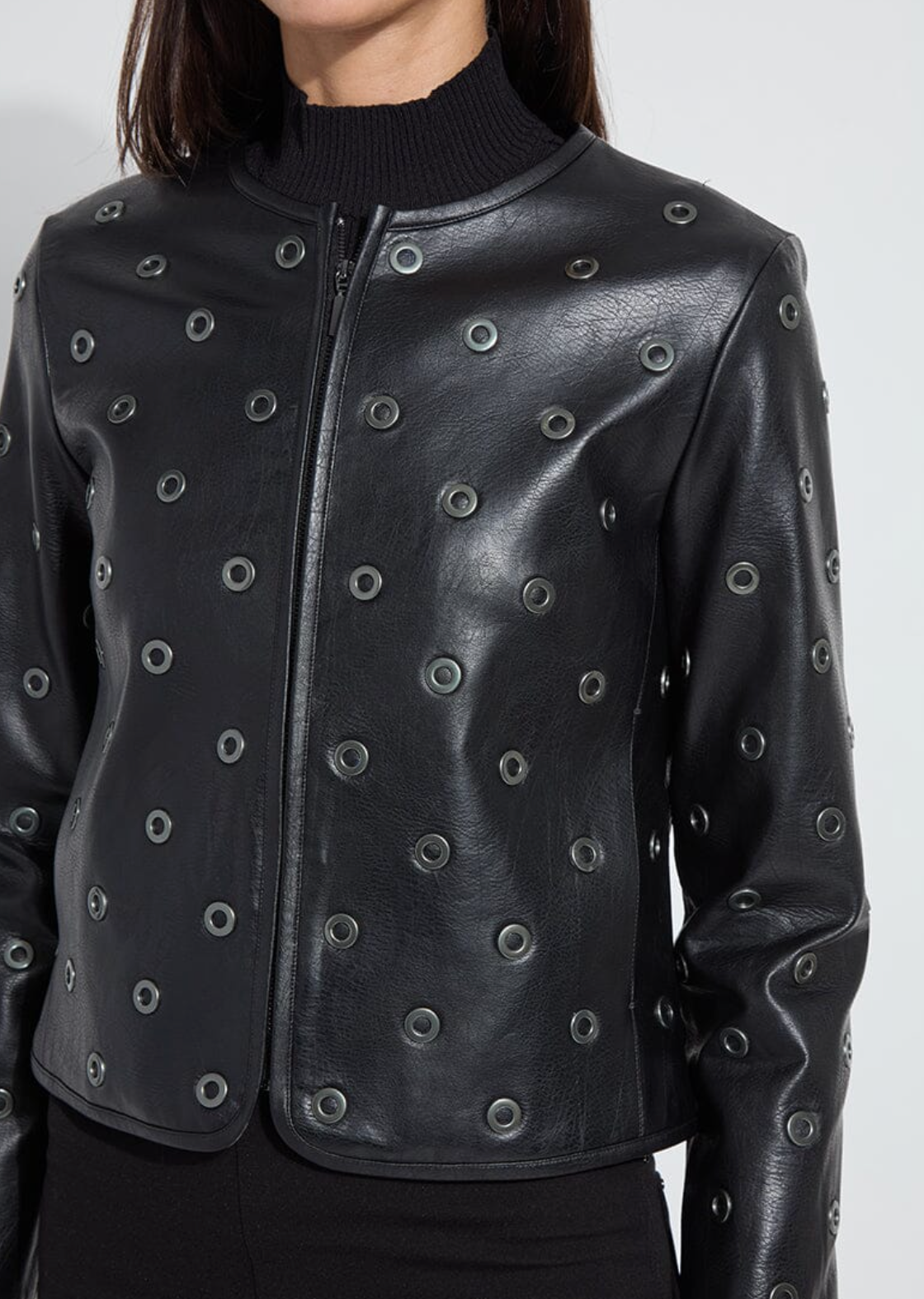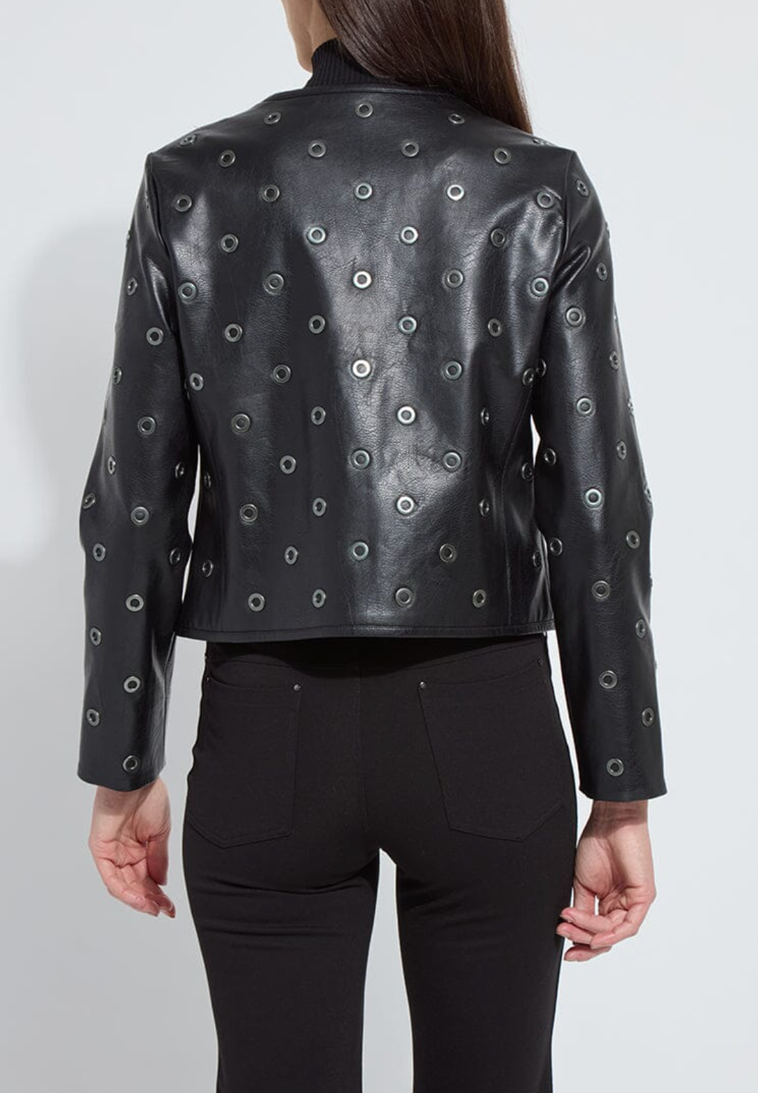 LYSEE' GENEVA GROMMET VEGAN LEATHER JACKET - BLACK