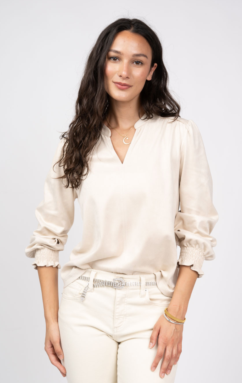 POOF SLEEVE FAUX FUR POPOVER TOP - WINE