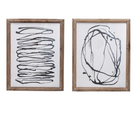 15-3/4"W x 19-1/2"H Wood Framed Glass Wall Décor w/ Abstract Line Art, Black & White, 2 Styles