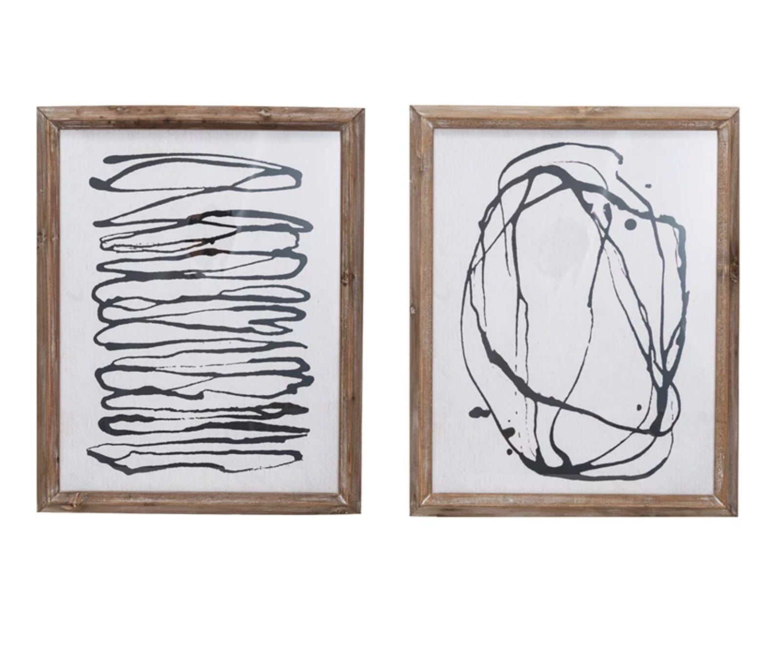 WOOD FRAMED GLASS WALL DECOR WITH ABSTRACT LINE ART - IN STORE PICK UP ONLY!