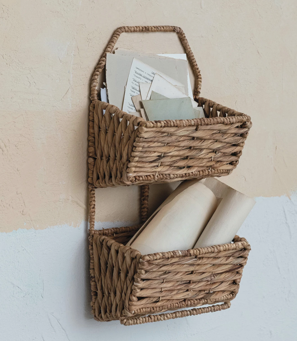 METAL & WATER HYACINTH 2-TIER WALL BASKET - IN STORE PICK UP ONLY!
