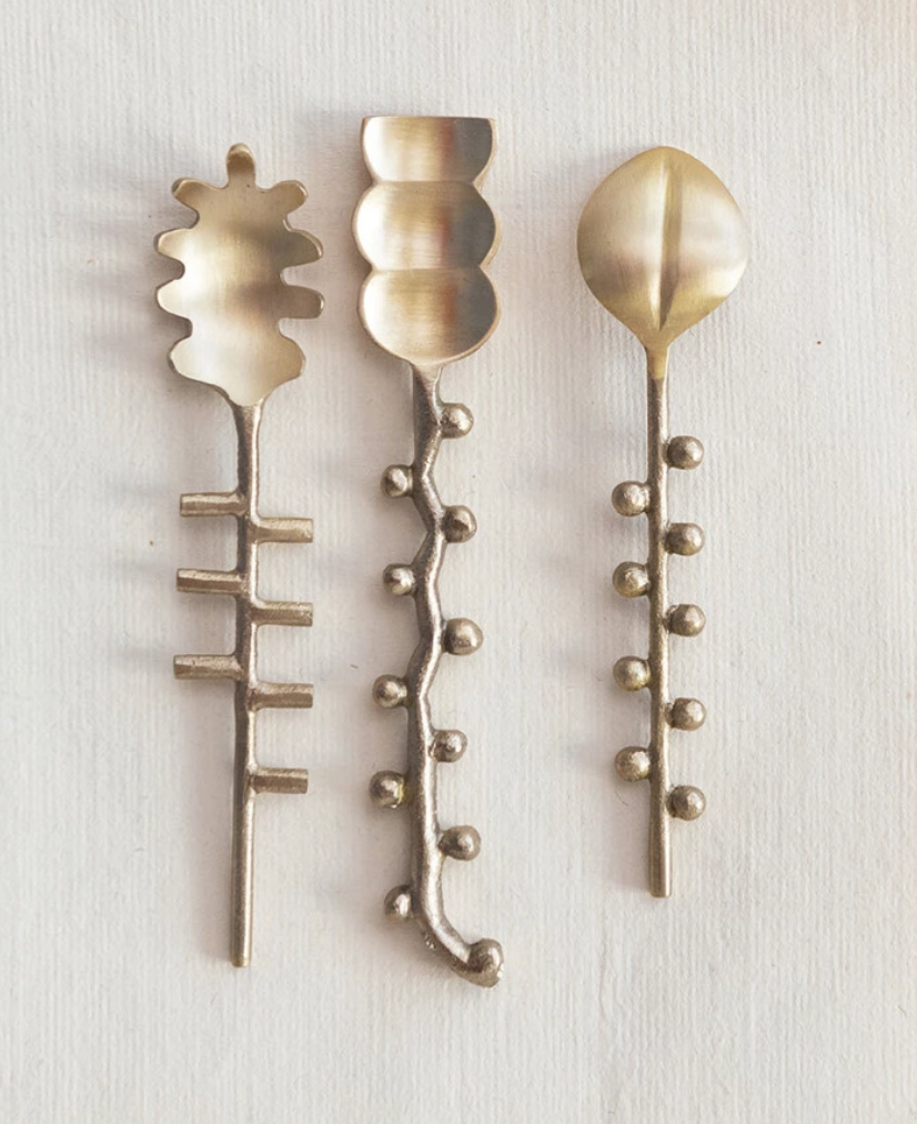 5-3/4"L Brass Formed Spoon, 3 Styles