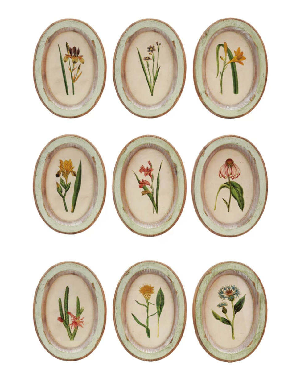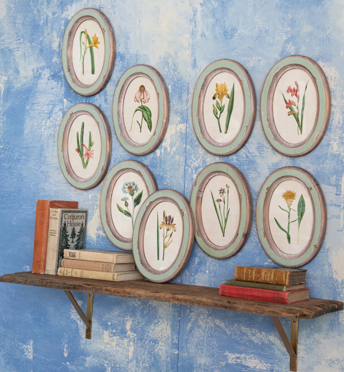 Wood Framed Glass Wall Décor w/ Flower, Distressed Finish, Multi Color, 9 Styles
